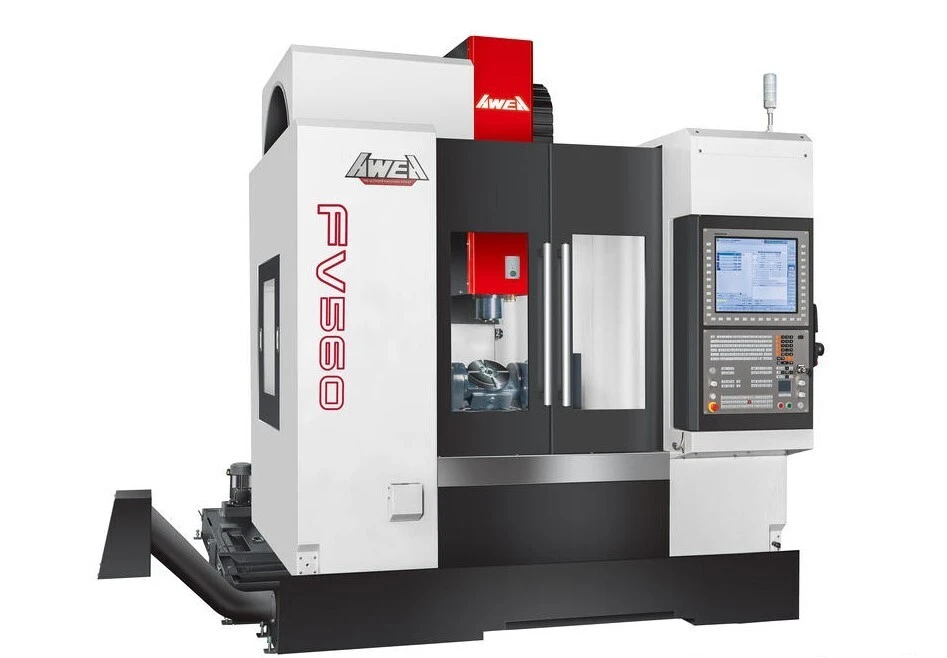 A standard arm-type automatic tool changer with random tool selection improves productivity by reducing tool change time, while the comprehensive chip management system—featuring chip flushing and conveyor support—maintains a clean and reliable machining environment. With its compact footprint, robust mechanical design, and true 5-axis capability, the AWEA FV-560 offers an excellent balance of precision, flexibility, and cost-performance for advanced manufacturing requirements.