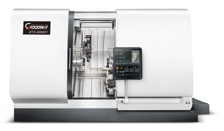 In response to the demands of highly efficient production and intricate machining processes for parts, the GOODWAY GTZ series is purpose-built to address these challenges. Featuring twin spindles and twin turrets, this machine offers unparalleled flexibility by allowing each turret to select any spindle for the task at hand. Its production efficiency surpasses that of traditional machines. Furthermore, with the capacity to accommodate up to 24 tools per turret and the inclusion of the Y-axis, the GTZ is fully equipped to handle the machining of even the most complex parts. Its formidable machining capabilities ensure that it meets all your manufacturing requirements seamlessly moving forward.