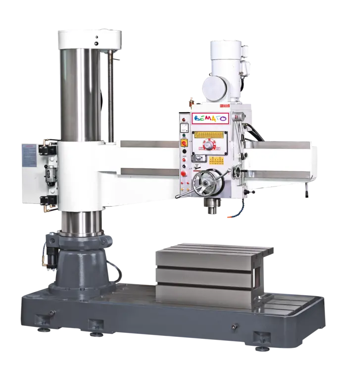 Explore new BEMATO BMT-1300RD Radial Drill. Robust capabilities: drilling to 500mm, tapping to 30mm, and boring up to 120mm in cast iron. Precision meets power with a 1,500 RPM spindle speed.