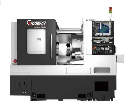 The GOODWAY GTW-1500 Series is a high-performance multi-axis CNC turning center, engineered to handle complex, front-and-back machining operations with superior accuracy and efficiency. Built with a slant-bed Meehanite casting structure and cutting-edge components, this machine is ideal for precision applications in the automotive, medical, and aerospace industries. Combining a live tooling turret, gang tooling system, twin Y-axis functionality, and synchronous main and sub-spindles, the GTW-1500 series takes productivity to the next level. With a travelling column design and ultra-rigid structure enhanced through FEA analysis, it ensures long-term stability and outstanding cutting performance—even under demanding workloads.
