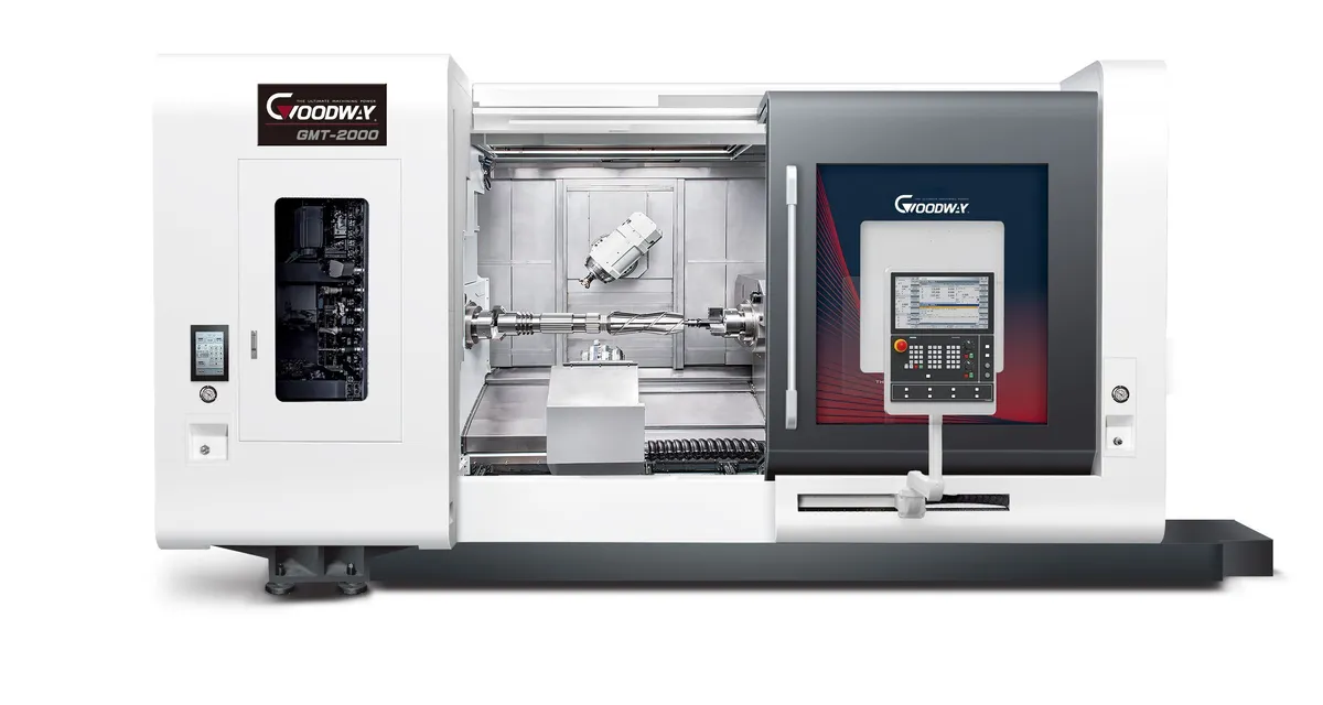 The GOODWAY GMT-2000LST Multi-Axis CNC Turning Center is a next-generation solution for manufacturers requiring precision, productivity, and flexibility in one machine. It integrates turning, milling, drilling, gear hobbing, and 5-axis simultaneous machining into a single setup, reducing cycle times, eliminating multiple fixturing, and ensuring unmatched accuracy. Built on a rigid FEM-optimized Meehanite cast iron base, and equipped with high-performance spindles and multi-axis control, it is engineered to handle both heavy-duty cutting and complex contour machining with consistent precision.