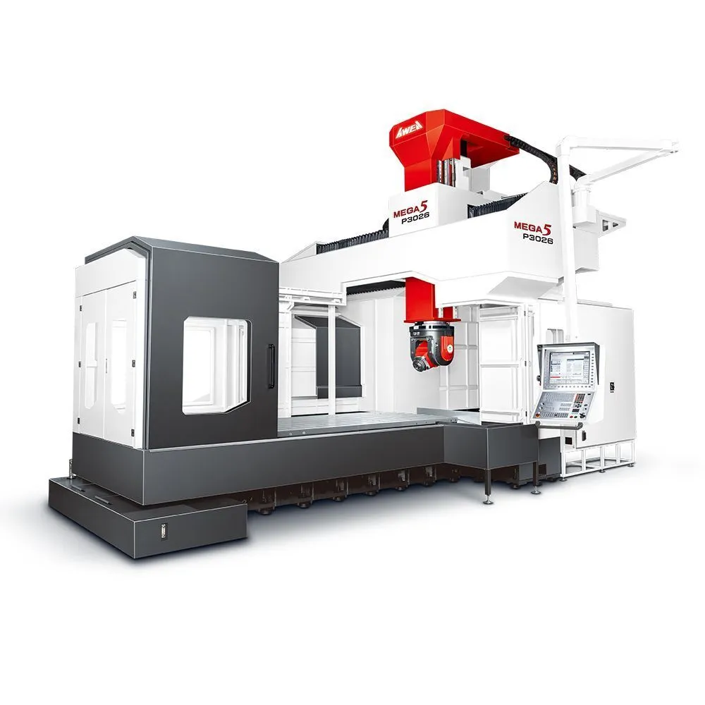 The AWEA MEGA5 P Series is engineered for advanced precision machining, featuring a fixed column design and super-rigid bridge-type structure for maximum stability and accuracy. Equipped with an Italian-made high-torque, two-axis milling head, it offers simultaneous 5-axis (X, Y, Z, B, C) machining, making it ideal for complex, large workpieces. This machine ensures efficiency and exceptional performance in heavy-duty tasks, with reduced vibrations thanks to its built-in spindle motor design.