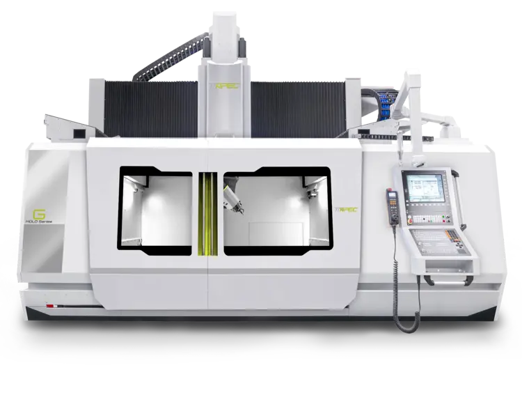 The APEC G3050 is a state-of-the-art 5-axis high-speed gantry machining center designed for large-scale, high-precision applications in industries such as aerospace, automotive, mold, and heavy equipment manufacturing. With a massive X-axis travel of 5,000 mm, Y-axis travel of 3,000 mm, and Z-axis travel of 1,200 mm, it provides exceptional machining capacity for oversized workpieces while maintaining superior accuracy. Equipped with an HSK100A spindle capable of reaching 15,000 RPM and delivering up to 54 kW of power and 143 Nm of torque, the G3050 ensures reliable cutting performance across aluminum alloys, composite materials, and complex mold components.