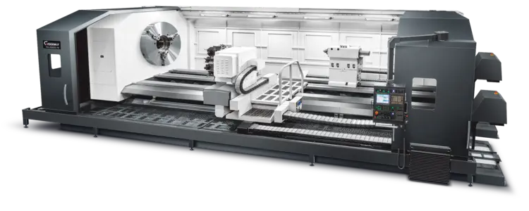 Together with the latest technology and high-quality components, the Goodway Flat-bed CNC Turning Center, HA series, utilizes high rigidity four box way bed with a 3-step gear spindle and servo indexing turret, to provide heavy-duty cutting capability for super large size workpiece applications. It is suitable for the oil and energy industry, aerospace and shipbuilding industry, and metallurgy industry. The optional four-way toolpost, boring tooling, and high rigidity steady rest equipment provide a more efficient turning performance for large workpiece applications. Furthermore, the live tooling center and C-axis are also available which allows the machine to perform more complicated tasks such as turning, milling, and drilling to fulfill your needs for today and tomorrow.