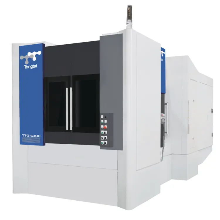 The TONGTAI TTG-630H Horizontal Machining Center is a robust 4-axis solution engineered for heavy-duty, high-precision applications across industries such as aerospace, automotive, mold and die, and general machining. Designed with a traveling column and box-type structural frame, this machine offers exceptional rigidity for stable machining under high loads. It features a 630 mm x 630 mm rotary pallet system with a maximum load capacity of 1,200 kg per table, making it ideal for large workpieces such as engine blocks, structural aerospace components, hydraulic housings, and mold bases.