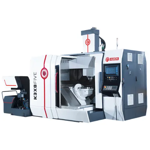 The HURON K3X 8 Five is a compact, high-performance 5-axis machining center engineered for precision milling of complex components in aerospace, medical, mold & die, and high-accuracy mechanical applications. Designed for simultaneous 5-axis and 5-sided machining, the K3X 8 Five offers an ideal combination of speed, dynamics, and accuracy in a compact footprint. With a worktable diameter of approximately 500 mm and a load capacity of up to 250 kg, it is perfect for high-precision machining of small to medium-sized parts. Its fixed-portal cast iron structure with ribbed reinforcement delivers maximum rigidity and vibration damping under high-speed conditions.